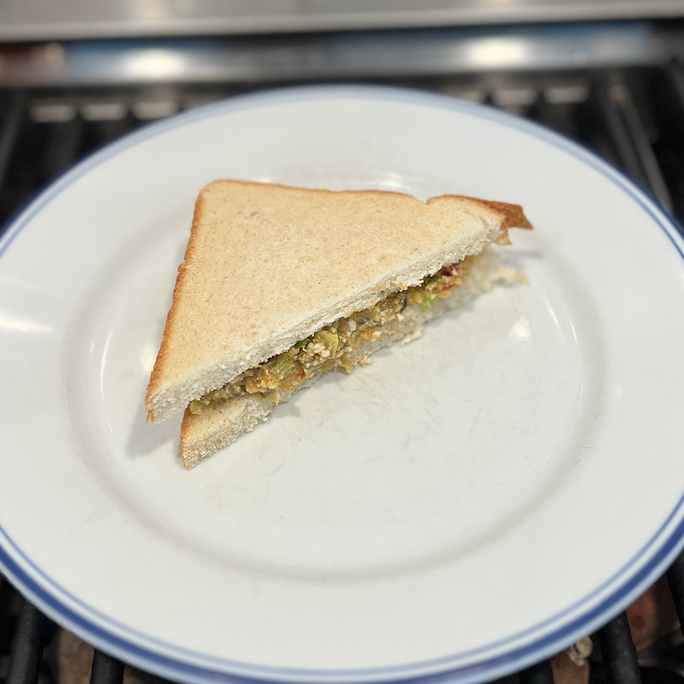 It is hard to imagine a sandwich that features fried bread as being anything other than delicious. Still, the filling does matter. And in this case it was fantastic. The curried mince was packed with flavor from ingredients like lots of warm spices and chutney. Needless to say it was also quite filling. So why not make it more filling by adding an over easy egg 🤦‍♂️. Yeah, yeah, yeah, the runny egg yolk was a satisfying addition so no regrets. And the green chutney (the recipe for which is here) add a nice complex spiciness to it. If you’re keen to make this sandwich, this is the recipe I followed.