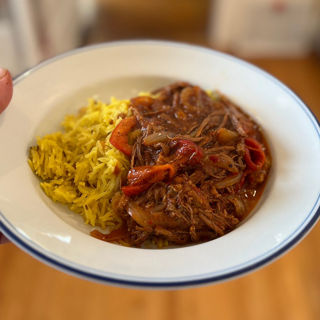 If you know me, you know I like play around and mash up cuisines. Especially if there is considerable ingredient overlap. Which is why I wanted to mash up the Cuban dish Ropa Vieja with the Indian flavor profile of Vindaloo. Here is the modified recipes I used to make the beef (in pressure cooker to save time), the Vindaloo flavoring paste, and the one where I brought it all together. Tangy, warm, spicy…this really had all the great elements of each dish. Which only got even tastier the next day. I had it with a basmati rice cooked with fennel seeds and turmeric to vibe off the flavors in the dish and that worked great as well. The one thing I would not do again is add the loose leaf black tea. I could be wrong but I couldn’t tell if it brought anything to the party.