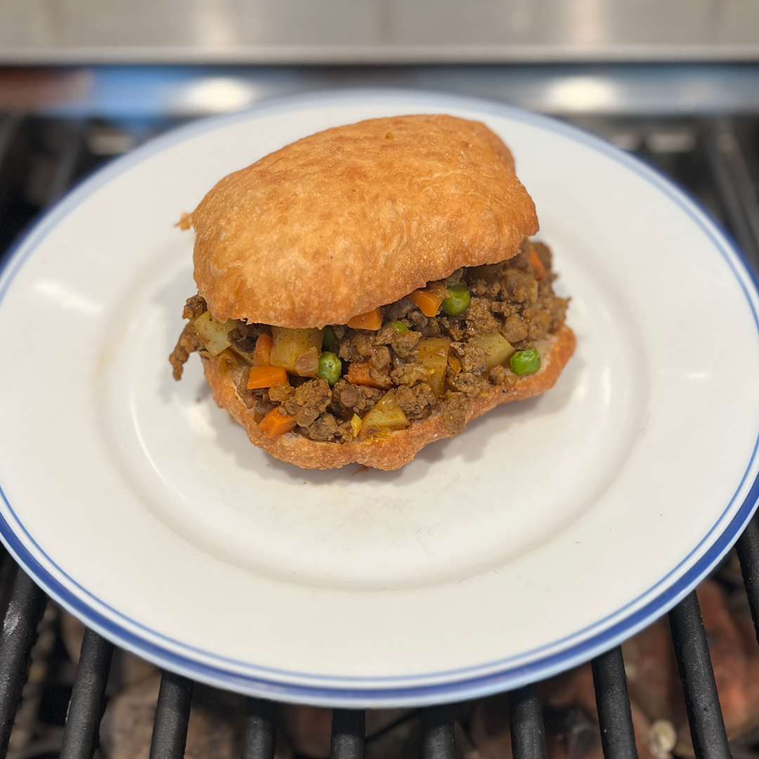 Vetkoek and Curried Mince (South Africa