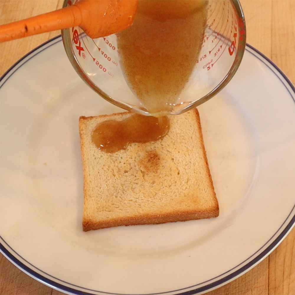 This âsandwichâ was tasty butâŠI donât know. While some folks are rigidly dogmatic about âem, Iâm pretty okay with the concept of open-faced sandwiches. This, however, was so far removed from an actual sandwich that, well, I just donât know. Naturally my plus up had to involve another slice of toast. But also some red chili flakes to kick it up a notch and a whisper of peanut butter as to not overpower the honey. And man, did that work!