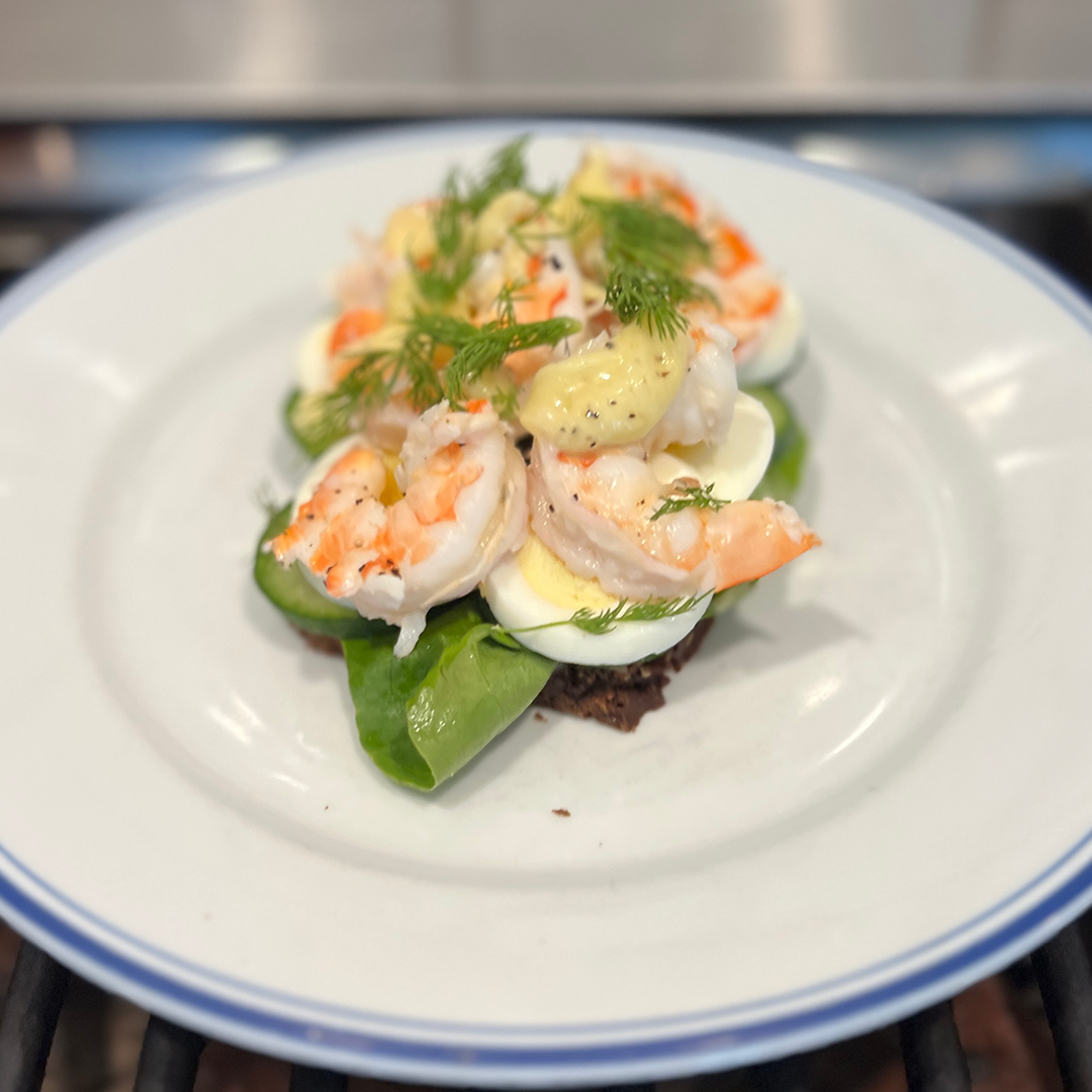 Ah yes, the RĂ€ksmörgĂ„s. A tasty, Swedish open-faced affair. Deceptively simply yet delicious. Sure, I made Swedish rye bread from scratch as well as purportedly Swedish mayonnaise. But you donât have to do all that. Just buy some light right over at World Market/Cost Plus or IKEA, add a little lemon to regular mayonnaise and youâre off to the races. Of course, donât use the shrimp I used. Apparently they use smaller, sweeter shrimp. In my defense, these were the smallest at all the markets I went to. And to be honest, it was still delicious. Adding a second piece of bread slathered in mayonnaise was fine but didnât really move the needle.