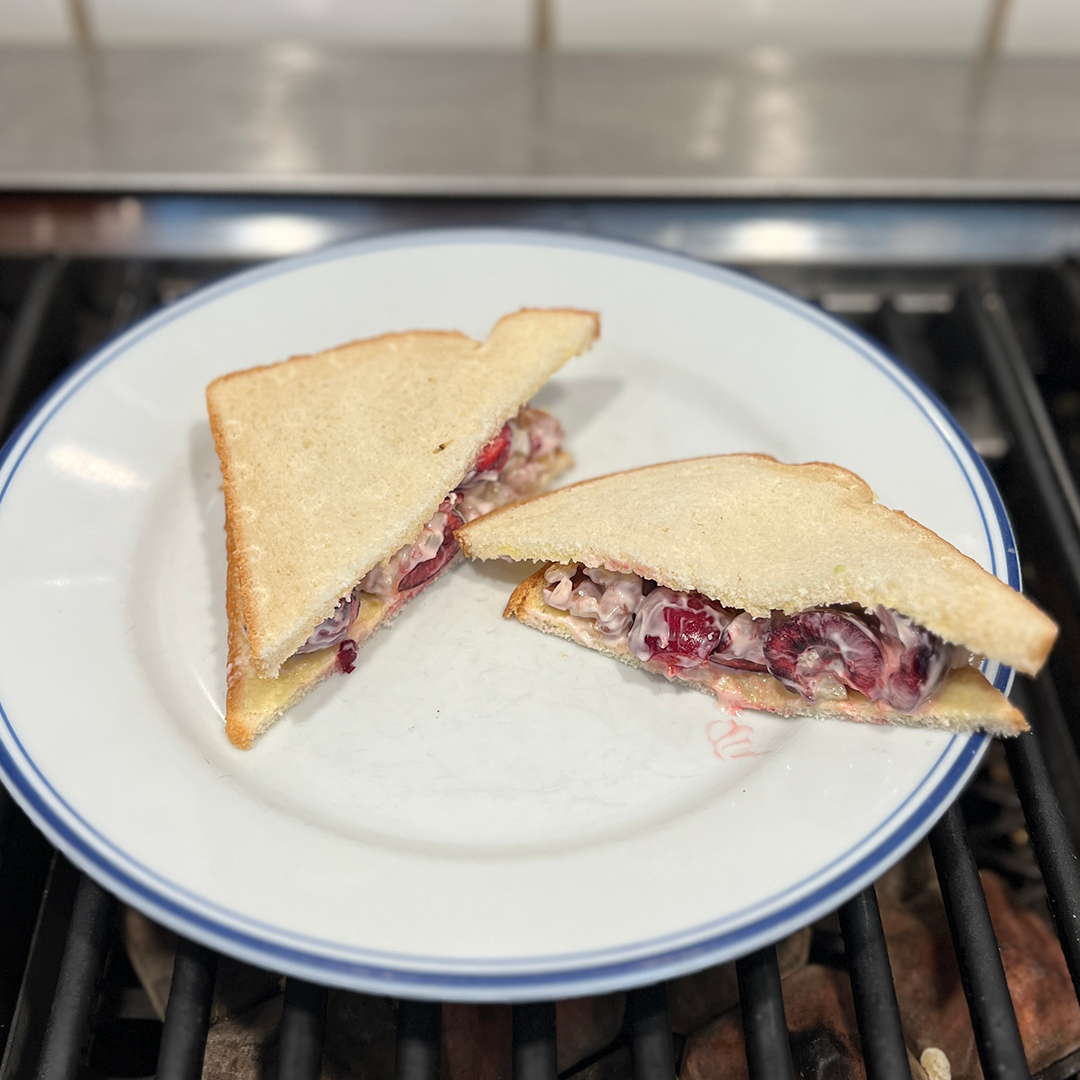When I read the name of this sandwich I was wondering where, exactly, this was going? Cherries, sweet, perfect for dessert, and “salad?” Well turned out to be a bare bones cherry Waldorf salad and not-to-bad one at that. Brought in a bit of complexity with the seasoning blend that bridges sweet and savory like a champ, Chinese five spice. Those warm spice worked well with every ingredient just up leveled the entire sandwich.