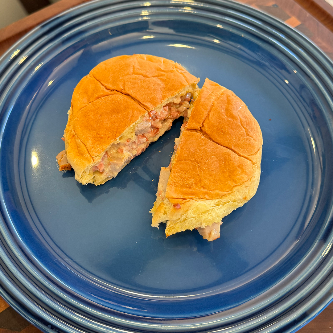 Seemingly a precursor to The Dagwood, this sandwich had a lot of ingredients but not a lot of flavor. I mean, sure, ham, chicken, sardine, and hardboiled egg at least brought some protein to the party but flavor? Not so much. The good news is that Old Bay Hot Sauce (pesky affiliate link) works with every individual ingredient. And, as it turn out, all of them together as well.