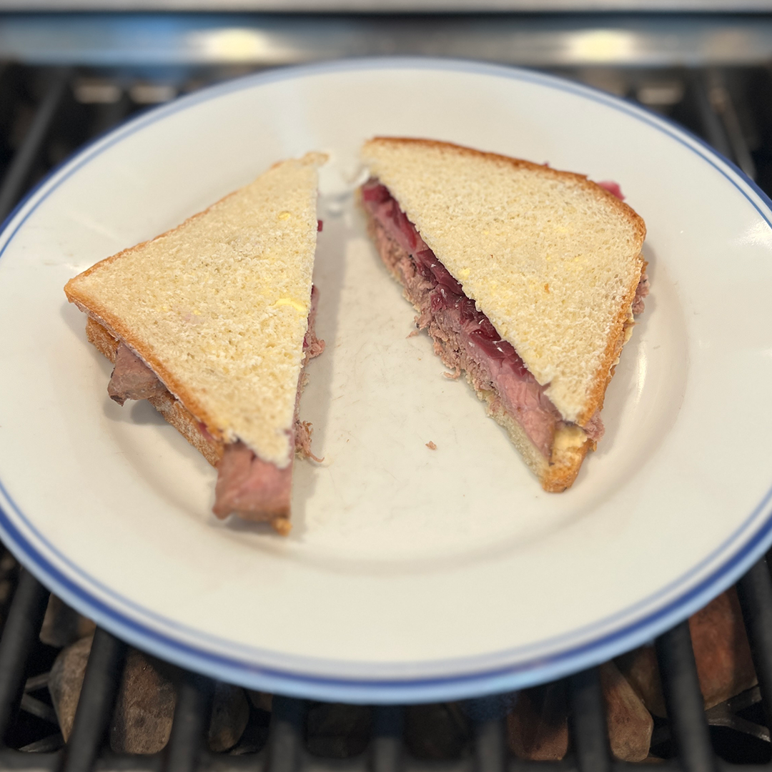 Ah yes, the beef on beef butter sandwich. That might have been a bit much were it not for the black pepper and pickled cabbage. Not mind-blowing but not bad, I essentially made it a Colnbrook on rye by adding caraway seeds and sea salt. And I do not regret it as the combo of rye, salt, and beef is tasty.