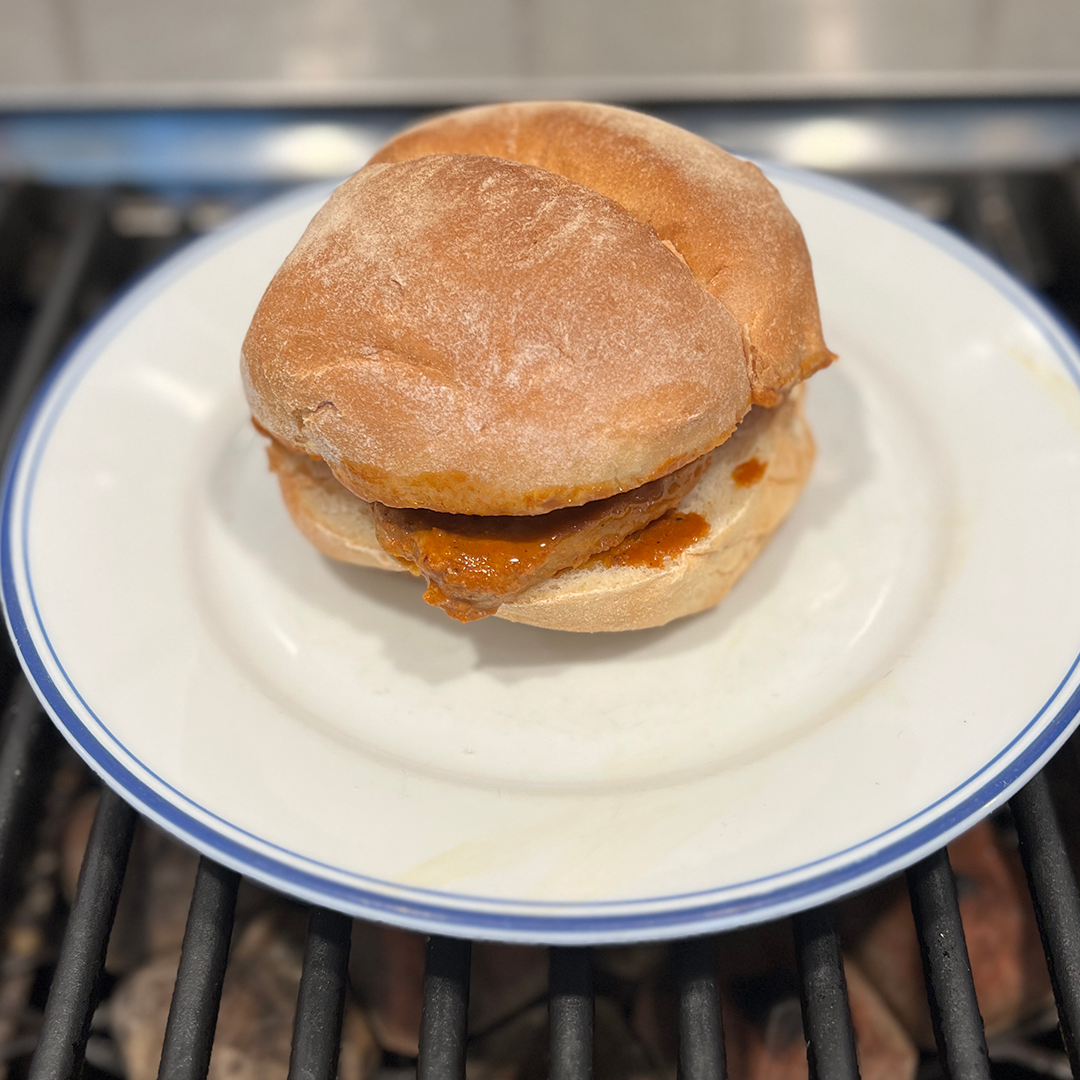 First off, I gotta say, Vic stuck the landing on this one. From the double plus up down to wearing a floral shirt (and yes, I own the same shirt). Vic took on a sandwich from The New Hot Dog and Hamburger Cookbook that is pretty typical of that book. Chop a bunch of stuff up mix with mayonnaise, shove into a bun, wrap in foil, and bake. Not that there’s anything wrong with that. In fact, Vic seemed pretty please with the result. Smart move to plus one up with diced Grillo’s pickles and deli mustard, and the other granny smith apple.