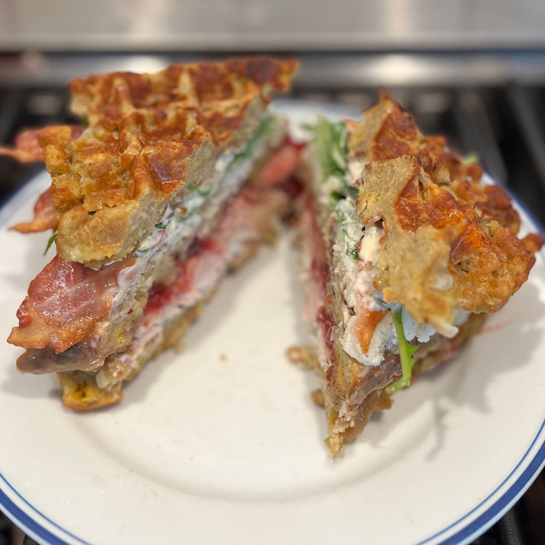 For the past two years, on the day after Thanksgiving, I’ve post a video on The Moistmaker. If you’re not familiar, it’s a sandwich from the TV show FRIENDS. We don’t see it on screen but the character Ross describes it in great detail including the gravy-soaked middle slice of bread. Well, this year I decided to have a bit of fun with it by doing a Recipe Remix. I replaced the bread with cheddar stuffing waffles (with the middle still soaked in gravy) and added bacon. I also added capers to the herbed mayonnaise and I will never not make it that way again as it added another dimension to it. If you’re curious to make the Recipe Remixed Moistmaker, I’ve saved the hastily written recipe here for you. If you make it, make with friends and/or family as it is not only big but calorie dense. Lol