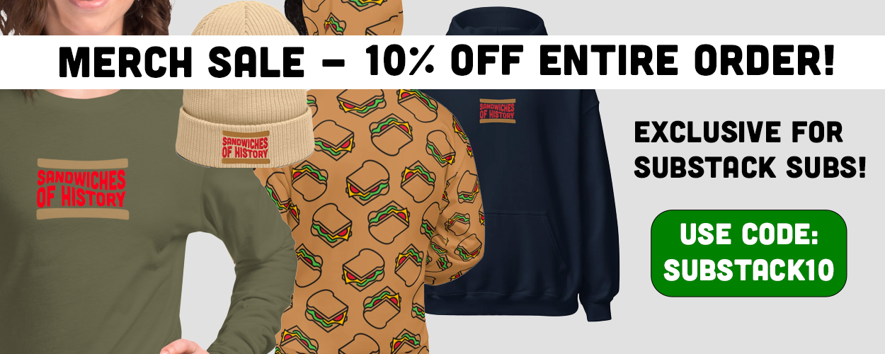 Well, that’s another week of sandwiches in the history books. Thank you again for subscribing to Sandwiches of History Substack. I really appreciate it.