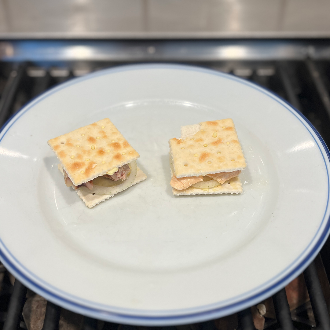 These were pretty ok. For a snack. I mean, when you have to fill out a book with 1,001 sandwich recipes you’re gonna have to get creative. The combo of salty cracker, sweet onion, and sardine wasn’t bad. But I did prefer the one with salmon for obvious reasons. But both benefitted from the pickley pop of capers. These would fun snacks for a cocktail party but calling them a sandwich…yeeeeeeeah.