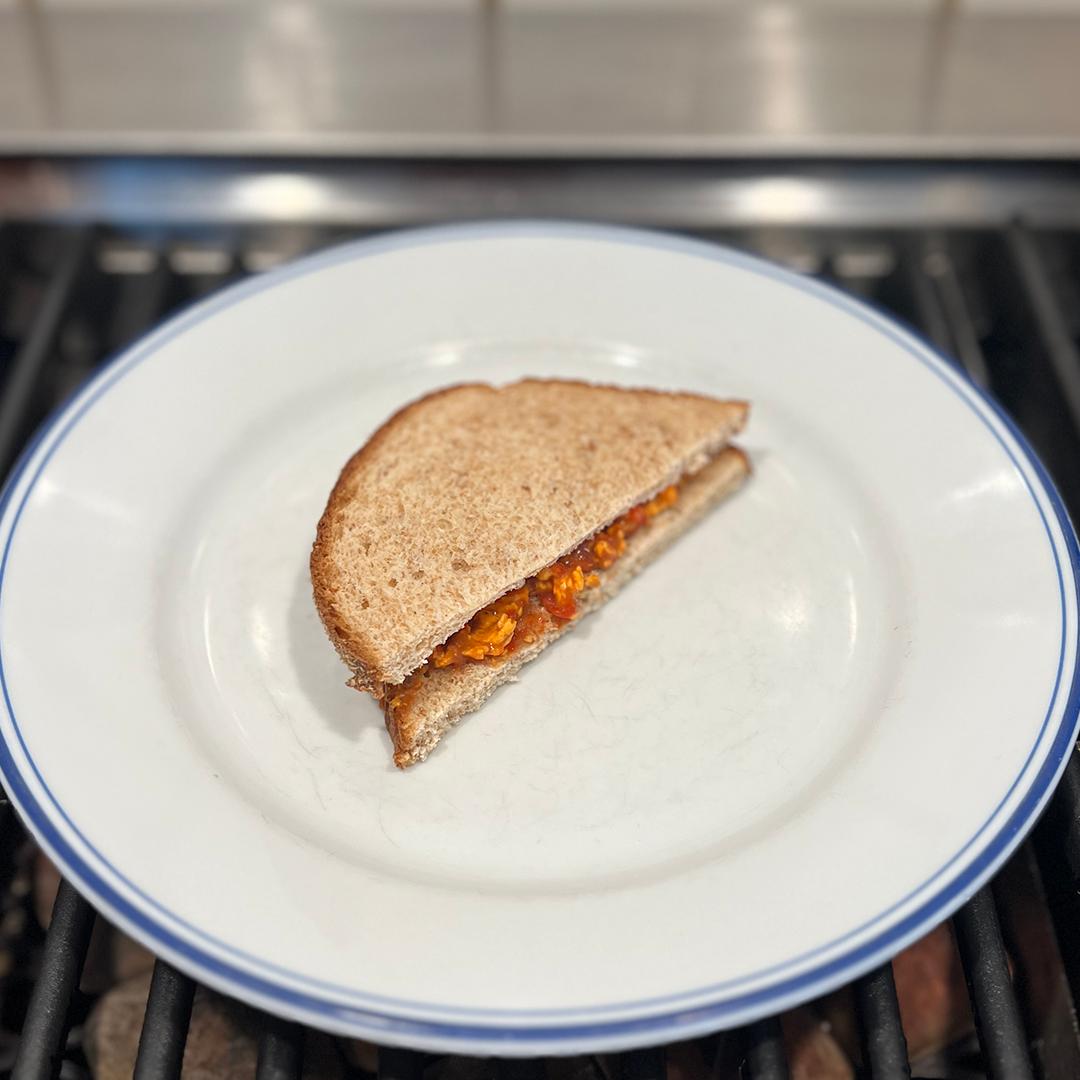 Ok, on to the sandwich. The name seemed misleading when I used the regular tube-based anchovy paste because you couldn’t taste anything but anchovy paste. But with the mashed up anchovies, suddenly the pimentos were front and center. You could taste the brightness of the lemon juice. It was actually a tasty little number. Were I re-rewriting the recipe today, I would sub in mayonnaise for the butter though as it was a but much.