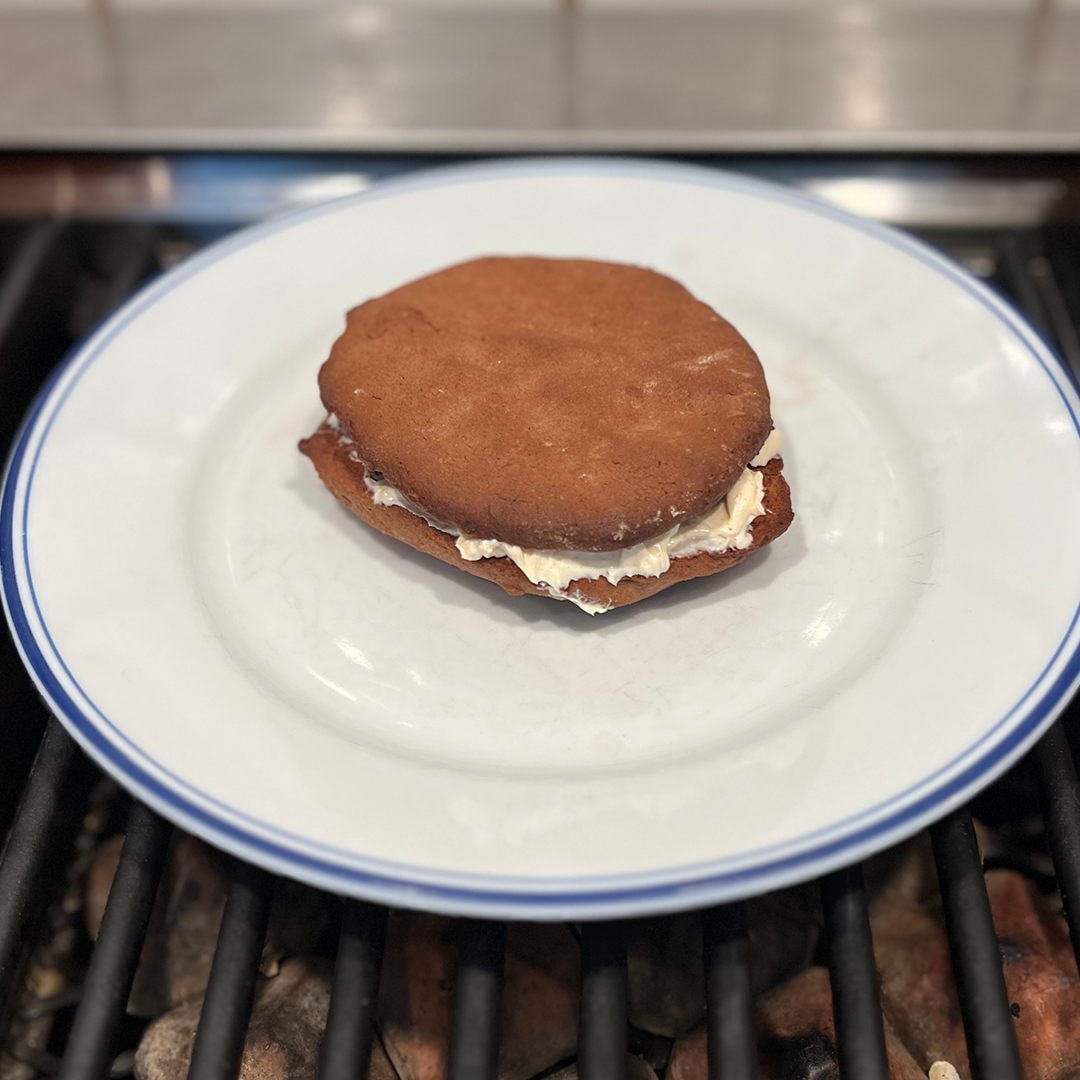 We haven’t done a lot of dessert sandwiches on Sandwiches of History. That may need to change. I think had I made the cookies a little too big but the combo of chocolate with the cream cheese with salt and paprika was tasty. Made even better with a little fruit.