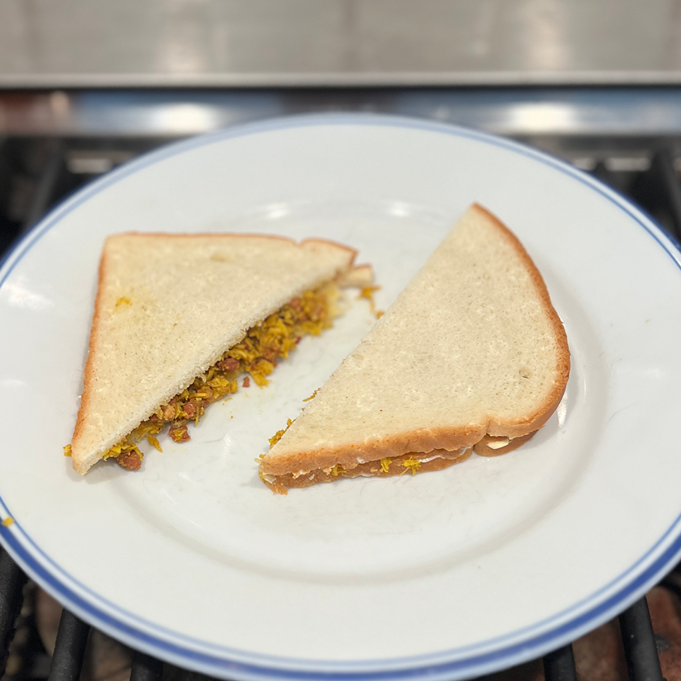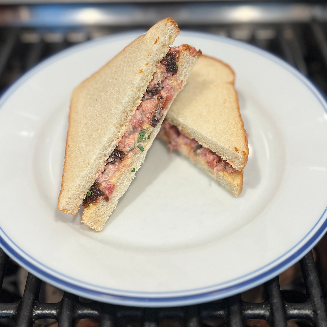 Unlike most cookbook authors of the era, at least the Vancouver Gas Company made an attempt to tie back one of the sandwich ingredients to the place in the name. It was pretty straightforward, ham, chicken, curry powder, and chicken stock cooked down into a paste of sorts, then slathered in between buttered bread. While recipe did kinda over-index on curry powder, it was still tasty. Plussed it up with a sweet mango chutney that provided a nice contrast and a touch of heat.