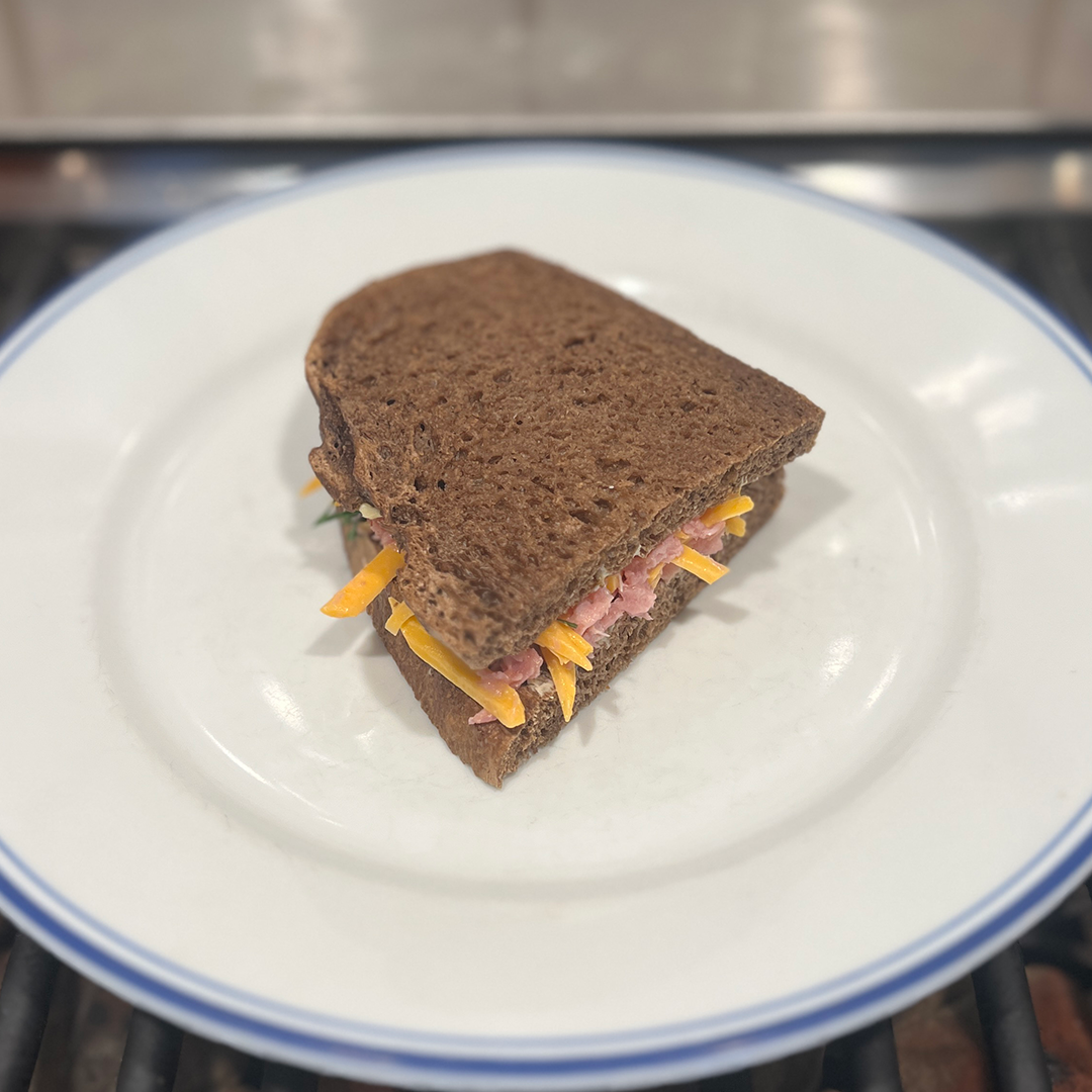 First things first, as several commenters correctly pointed out, PET Milk is still very much a brand and is actually evaporated milk. So, that is my bad for not figuring that out. Would the use of canned, evaporated milk have radically changed the sandwich? I’m not sure flavor-wise but texture-wise probably a bit. The base sandwich with it’s ground ham, cheese, and dry mustard on rye bread really felt like a solid start. But to me this screamed out for the grilled cheese treatment. And, since I had plenty leftover from The Corned Cutie a few days prior, I opted to use Wickles Pickles Dirty Dill Pickled Okra instead of dill pickles. The okra, by the way, isn’t slimy in the least and has nice crunch to it. Definitely worth checking out.