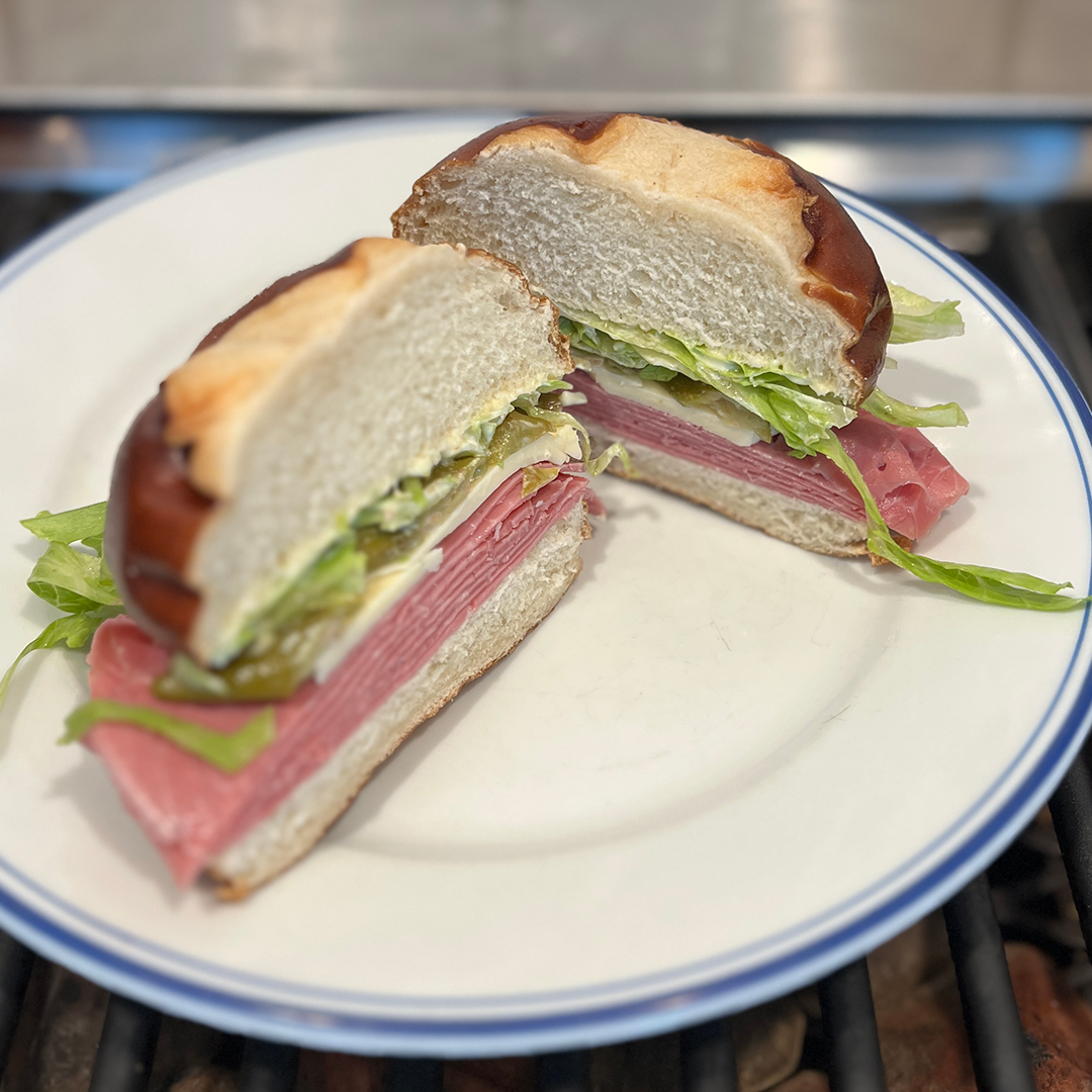 My man Jacob over on Adventures in Aardia gets lucky everyone once in a while with his Roll For Sandwich concoctions. If you’re not familiar, he rolls Dungeons and Dragons dice to determine different parts of the sandwich (e.g. bread, meat, cheese, roughage, sauce, etc). It is a real crap shoot. So when he deems one a ten out of ten I take notice. This one featured a pretzel bun, corned beef, horseradish cheddar, shredded lettuce, and celery salt. It was an amazing combination to begin with. With the sweet freshness of tomato it easily got to a ten.
