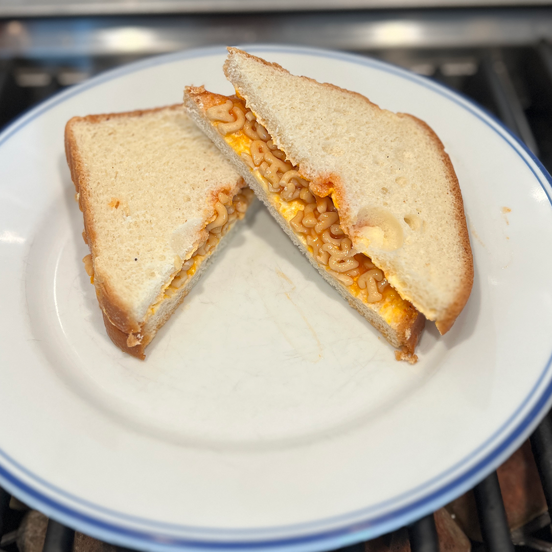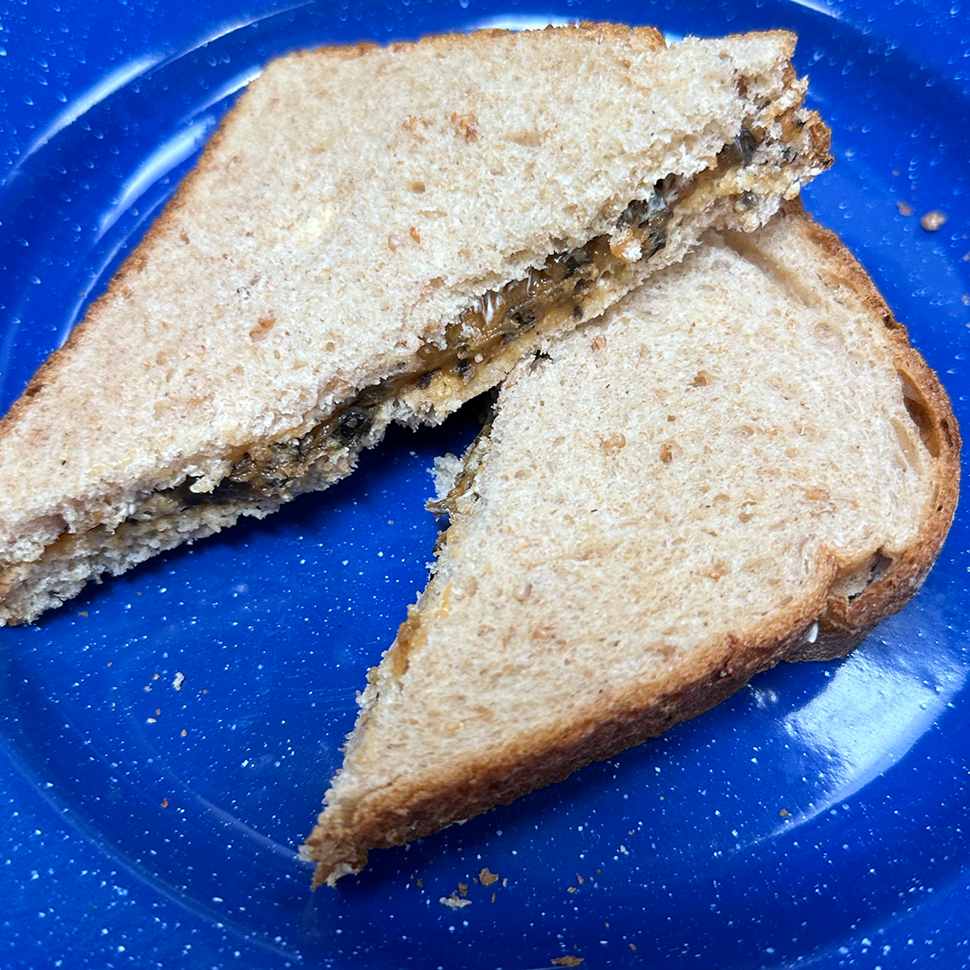I had never heard of Alphagetti before the email came in from Margaret on Vancouver Island. When I did a search online to find them, the only site selling ‘em was Canadian. Which led met to think it was a Canada-only product. Apparently not. At any rate it isn’t far off from Spagetti O's in concept. What was great was that the butter really did act like a moisture barrier. So the sandwich wasn’t completely sogged out. It was a fun, somewhat tasty sandwich made more adult buy adding grated parmesan cheese and Crushn Red Chili Flakes (not an affiliate link).