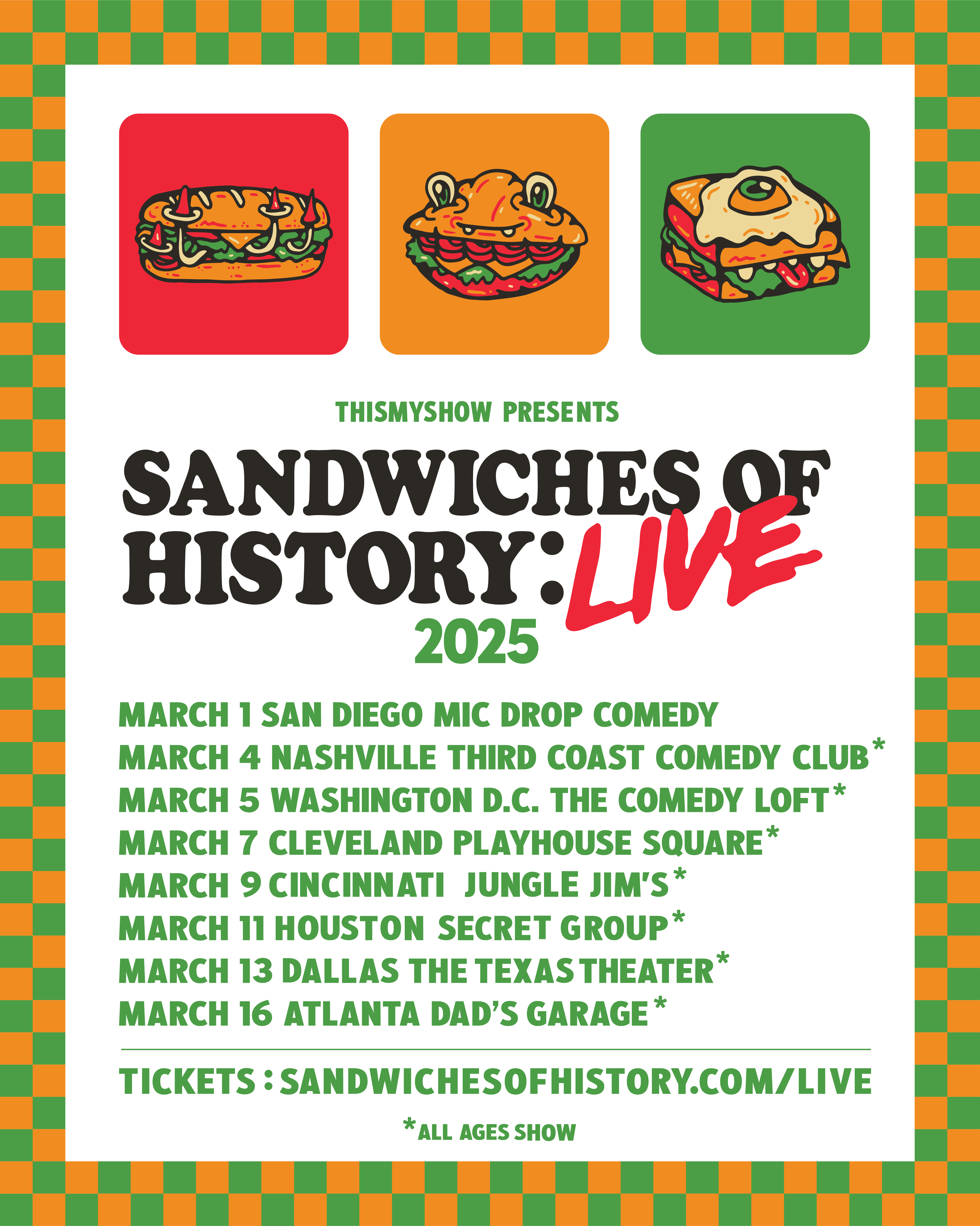 Not so subtle reminder to get your ticket for Sandwiches of History: LIVE!