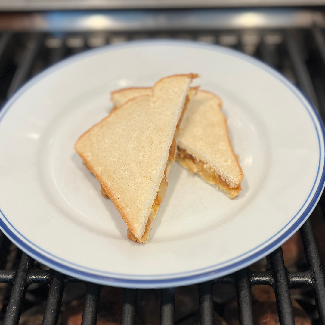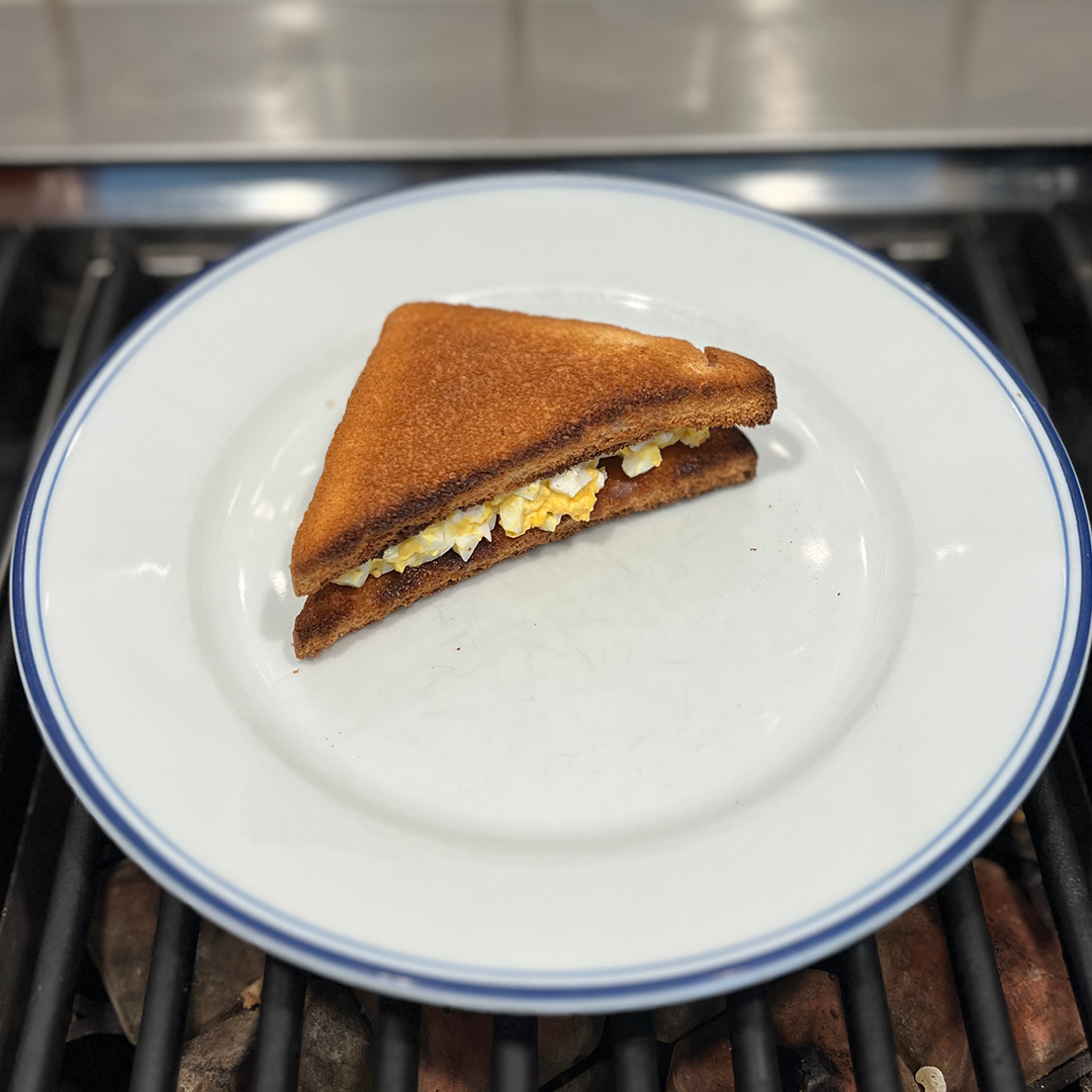 Sure, I’ll try your Yeast Sandwiches, your Goblin Sandwiches, but I am human. So, every once in a while I like to treat myself. To wit, the Bacon and Cheese Sandwich. I mean, grated cheese and bacon on buttered bread, toasted? Yeah, that’s a nice vacation. My initial plus up of the Outer Limits Ghost Pepper and Roasted Garlic Hot Sauce not only brought the heat to offset the richness but also some depth of flavor. Then I had to go ahead and plus it up again with the sauce AND an over easy egg. Yeah, that was good day.