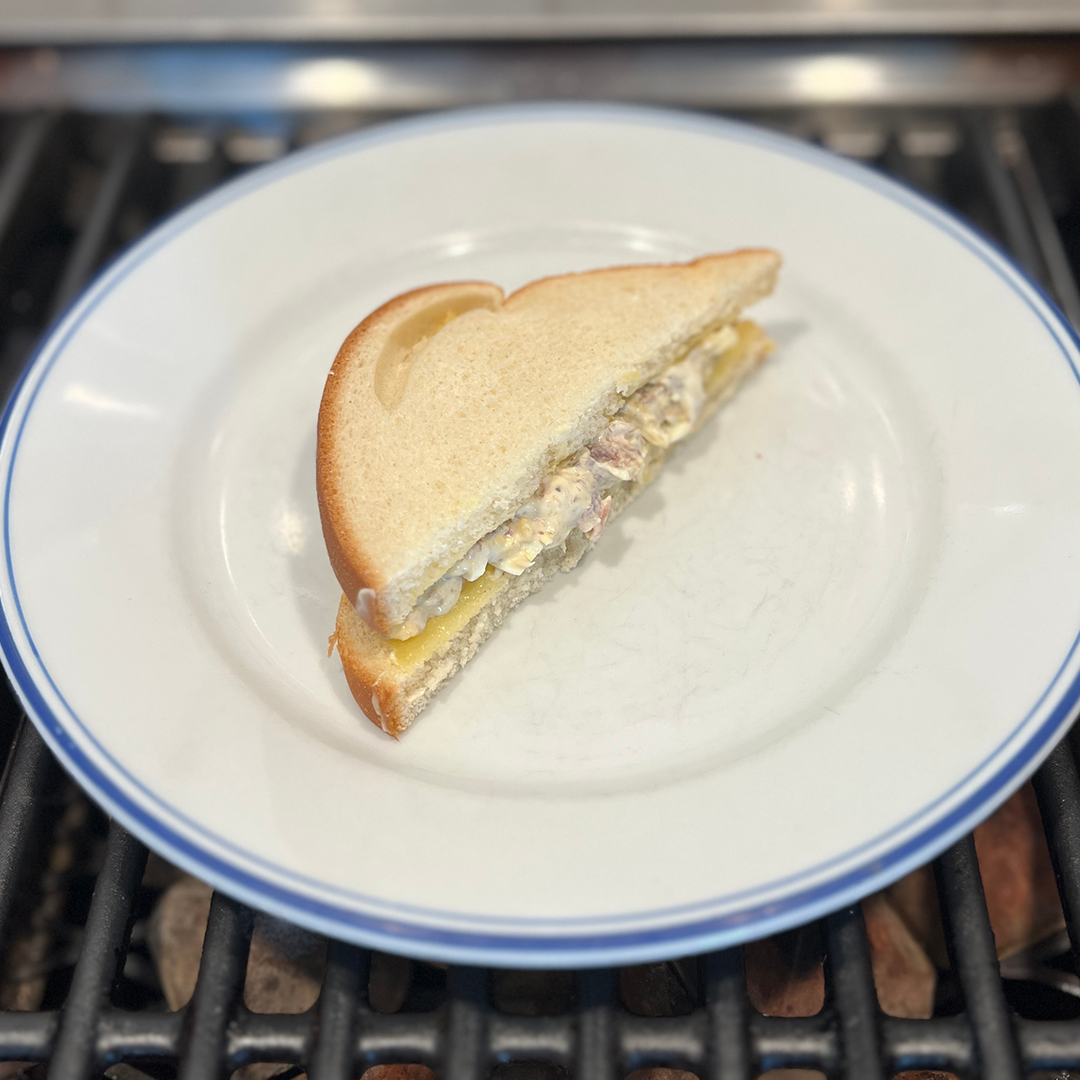 Every once in a while I stumble upon what is clearly a breakfast sandwich. But interestingly enough, none of the old cookbooks have that as a category. This was tasty and just one ingredient away from a Denver Sandwich (see you next time, green bell pepper). Bacon, onion, and eggs between slices of toast make for a tasty sandwich. Oddly enough, this is one of the few sandwiches from the book that didn’t say to butter the bread. And it needed a little sandwich lubrication. So, I opted for the cherry pepper mayo from Jawndiments. Nice creamy mayo with just a little kick of heat. It was like an area rug for a room, it really tied the sandwich together. The smoky cheddar cheese just made it that much better.